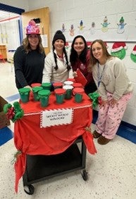 The Woot! Woot! Wagon! was developed and implemented at the ECEC to promote mental/emotional wellness as well as physical wellness for our dedicated hard hard-working. The climate committee purchased a cart to name as above and greeted staff members on several occasions either stationary or travelling with upbeat music and offered a healthy snack or clementines as well as a bottle of water. Several times they were greeted at door and started their day dancing down the halls with their goodies for the day. Seeing the smiles and happiness on staff members’ faces was the best part. In addition, at Christmas time the cart was used to play a fun game with giveaways and healthy snacks. The committee utilized CDC healthy strategies such as choosing drinks wisely: try and choose water over sugar-induced drinks that have adverse effects on our health. In addition, eating healthier foods by using whole grains, adding more vegetables into the diet, etc. March was National Nutrition Month and this was a focus for staff as well as usual for students. With the Woot! Woot! Wagon! we want our staff to feel positive about themselves and cope well with everyday pressures. The cart allows us to encourage, acknowledge, and educate staff on healthy behaviors and mindfulness.